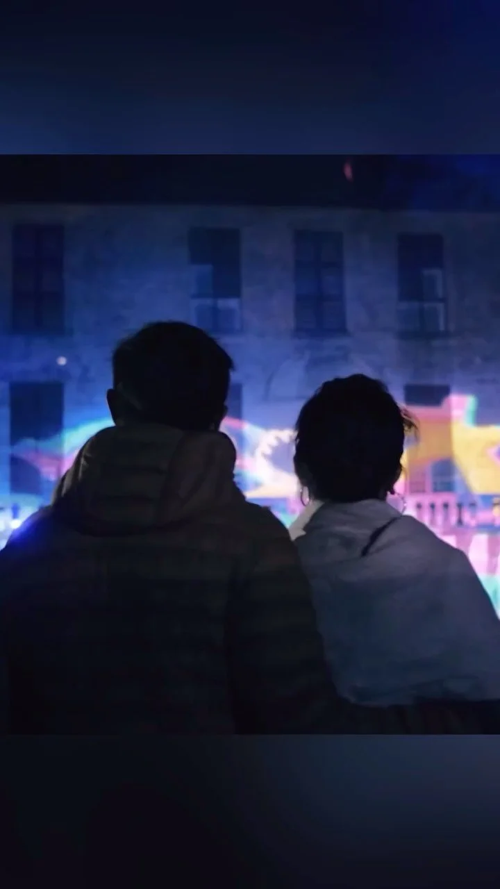 Des personnages animés, lumineux et bienveillants qui déploient leur énergie dans la ville à la nuit tombée. 🌙