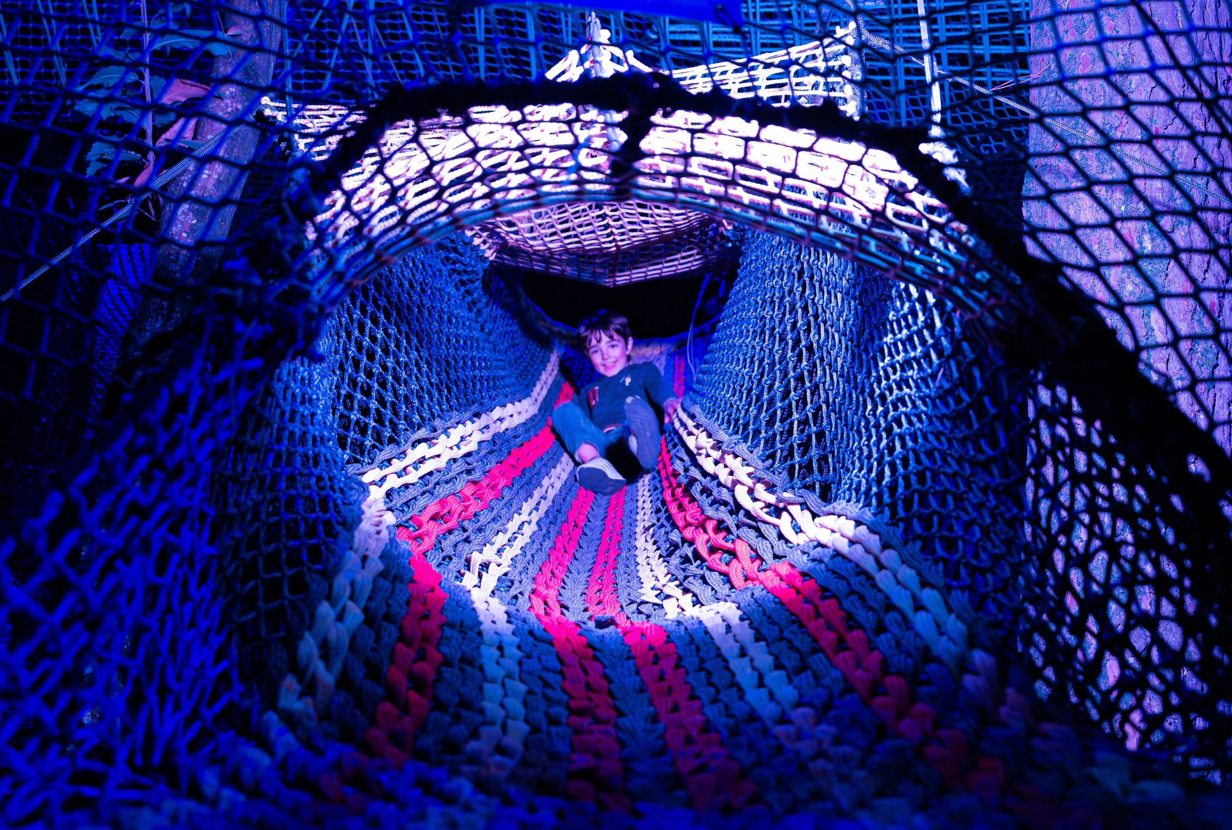 Nous avons imaginé une entrée douce, où le visiteur bascule progressivement dans un autre rythme. Au crépuscule, les Lucioles s’éveillent. Elles apparaissent dans les premiers arbres et invitent chacun à activer sa propre lumière.